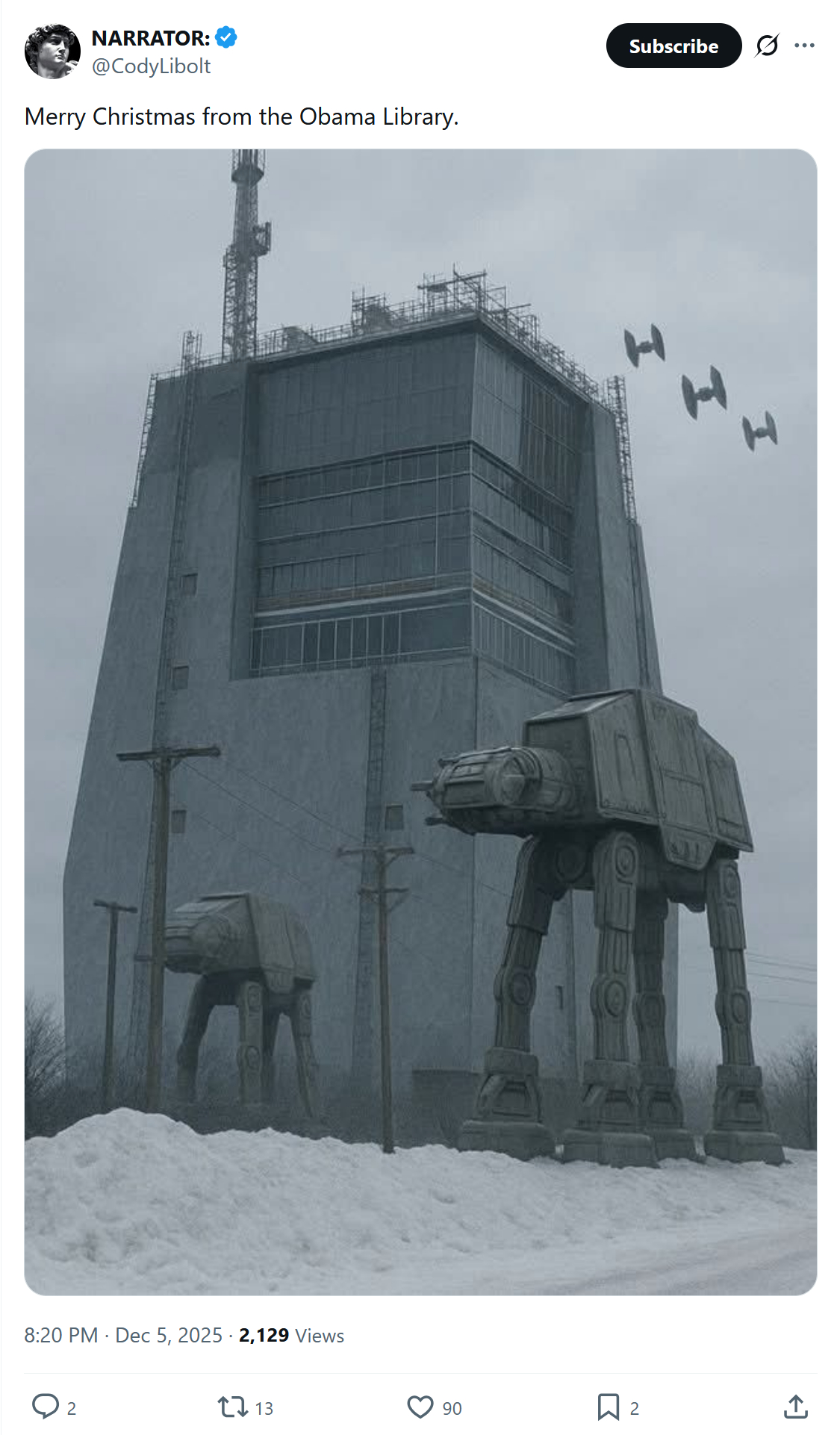 Since Joe was the figurehead during Obama’s third term in office, isn’t the answer here simple? Just give Biden’s library a couple of rooms in the basement of Barry’s Death Star flak tower: