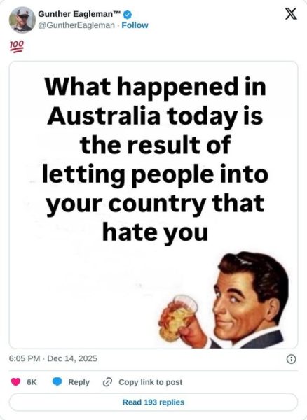 When you don’t wear a mask VS when you shoot a bunch of Jews. pic.twitter.com/NINJFAJ23Y— EducatëdHillbilly™ (@RobProvince) December 15, 2025