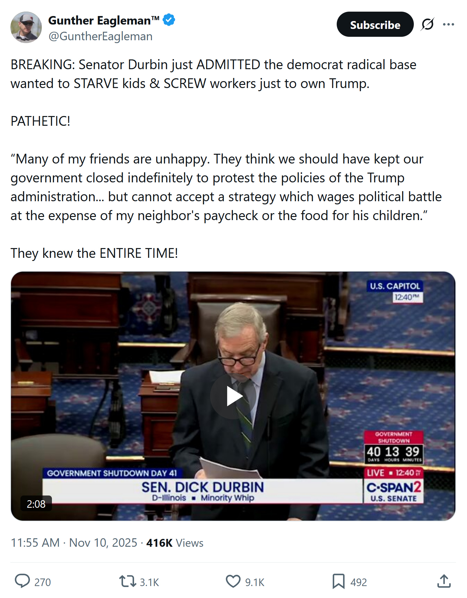 — Rep. Tim Burchett Press Office (@RepTimBurchett) November 13, 2025