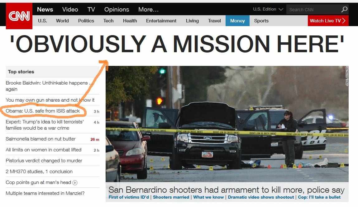Plus: “The literal DESPERATION to keep blaming the San Bernardino carnage on ‘workplace grievances’ as CNN is still doing is nothing short of delusional and an example of the cognitive disorder engulfing our media and the left in the face of radical Islam.”