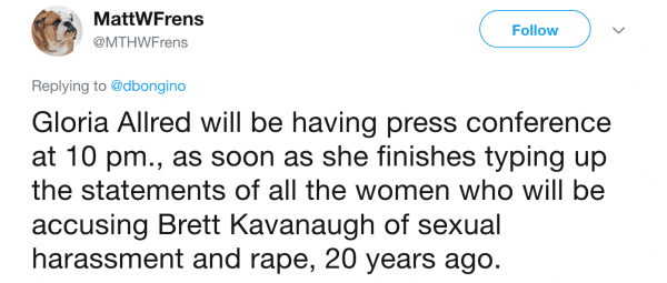 IT’S BRETT KAVANAUGH. With a narrow majority, Trump goes for a safe pick. Of course, he’ll still be Hitler. Because whoever the nominee was, he or she was going to be Hitler.