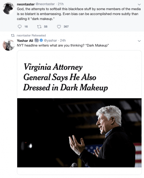 Related: “Virginia politics is now something of a political suicide pact or Mexican standoff. In order to ensure Virginia House speaker Kirk Cox, a Republican, doesn’t become the next governor, Democrats must keep at least one of them, which means all three will probably survive.”