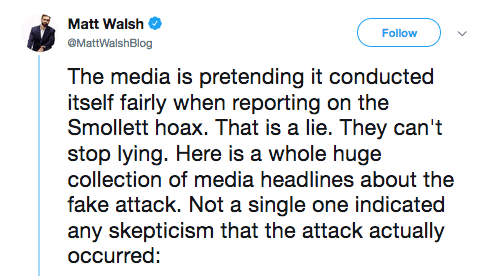 TYLER O’NEIL: Facebook Bans Conservative Articles on Jussie Smollett Hate Hoax. “You’re not allowed to say that Jussie Smollett carried out a hate hoax.”