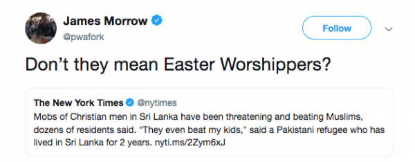 THEY’RE ONLY “EASTER WORSHIPPERS” WHEN THEY’RE VICTIMS. WHEN THEY’RE VIOLENT, THE PRESS IS HAPPY TO CALL THEM CHRISTIANS: