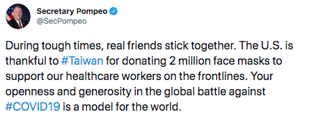 TAIWAN HAS REALLY LOOKED GOOD DURING THIS CRISIS, but this is a brutal China subtweet: