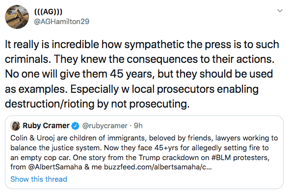 This is unAmerican, and these people should pay a stiff price. The left has operated outside law and custom with impunity for too long.