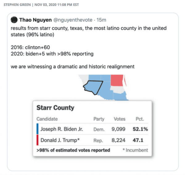 MORE: And now the CBC has changed to put Biden ahead. Not sure what’s happened in the last half hour to account for that.