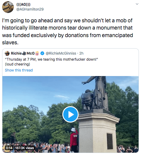 Under a Reynolds Administration the Emancipation Monument would be defended by a platoon of flamethrowers. But we live in the kinder, gentler Trump era for now.
