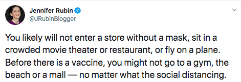 THAT’S WEIRD, BECAUSE MY GYM REOPENS ON FRIDAY. Oh, right, it’s Jen Rubin talking here.