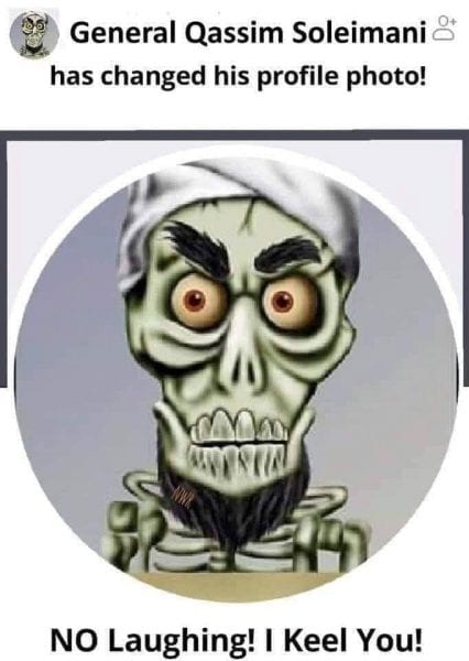 IRAN’S LATEST REDSHIRT NAMED, MEET HIM BEFORE IT’S TOO LATE: Iran names Quds Force number 2, Esmail Ghaani, to replace slain Soleimani. Hey, Esmail, pay no attention to that buzzing outside your window. . . .