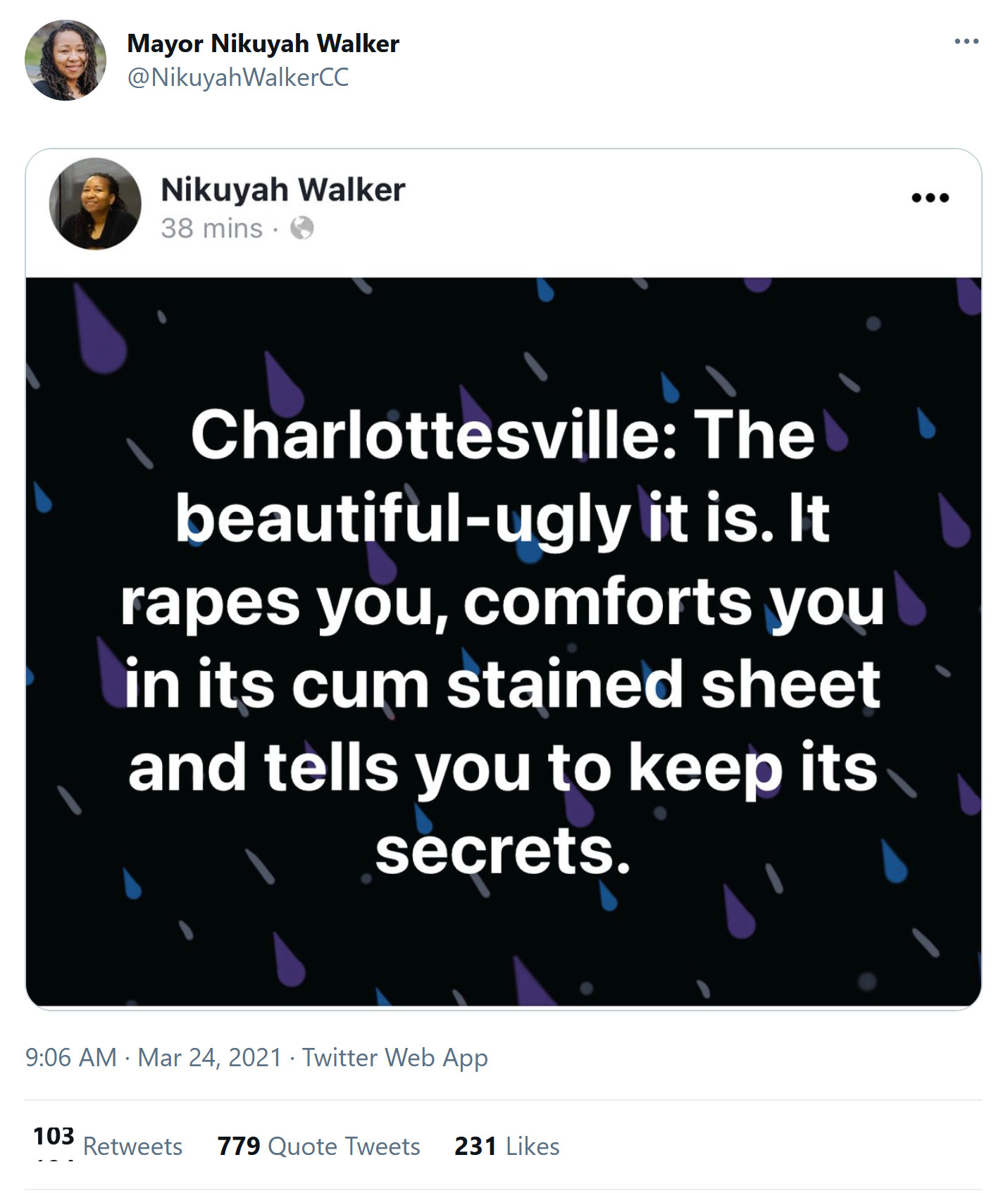 A controversial post on Charlottesville Mayor Nikuyah Walker’s Facebook account is causing a stir.