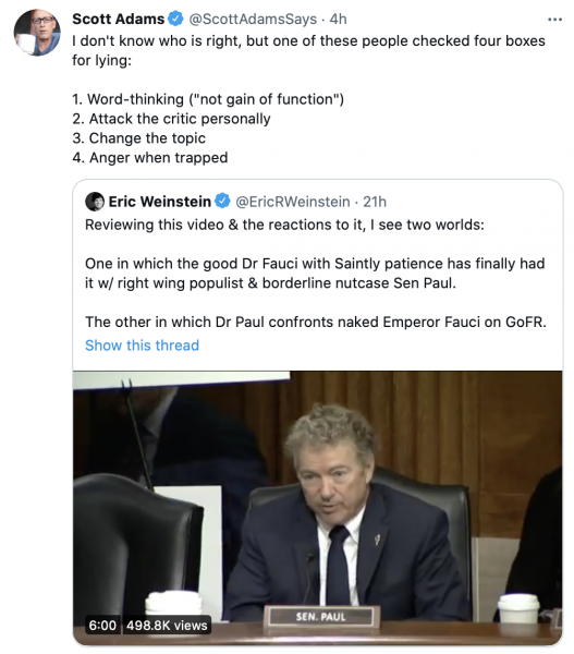 JIM TREACHER: Anthony Fauci Is Immune to Answering Questions. “I don’t trust Anthony Fauci anymore, and I don’t trust anybody who expects me to trust him. I want nothing to do with the weird little cult these freaks have built around him. They have the right to their religious beliefs, but it’s not science.”