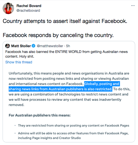 There’s backstory to one of the piece’s authors, who strikes me as an utterly third-rate mind without any leavening agents such as intellectual humility or a sense of history beyond the early years of Nickelodeon. The idea that people are using a private means of communication that is — what’s the word? — PRIVATE, well, it just galls. Misinformation might be spread! No — it’s probably being spread! People are saying things and using words and there’s no one from Snopes or Politico to stop them and say “hold up now, let’s run that assertion past our panel of people whose vested devotion to a particular set of ideological concepts do not align with yours, but are considered True because they believe in all the Good Things.”