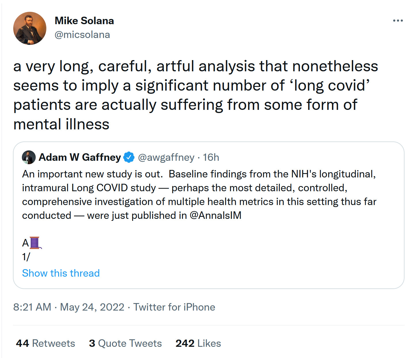 THREAD: “A very long, careful, artful analysis that nonetheless seems to imply a significant number of ‘long covid’ patients are actually suffering from some form of mental illness.”