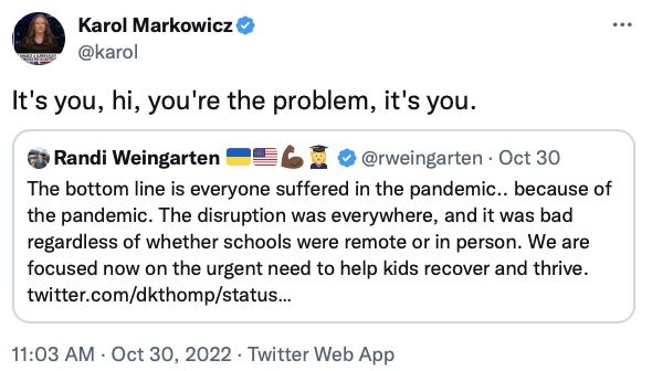 RANDI WEINGARTEN AND THE TEACHERS’ UNIONS IN GENERAL SHOULD BE UTTERLY DISCREDITED POST-COVID: