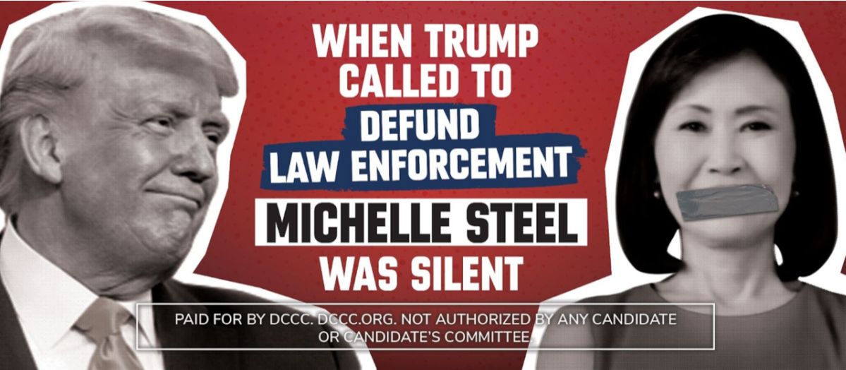 Cockburn, whose stance is pro-kink and anti-shame, came across new billboards that House Democrats are launching against Congresswomen Jen Kiggans and Michelle Steel. The two trailblazing women are depicted gagged, next to a bare-faced Donald Trump. The ads argue that the women were silent when former President Trump said he wanted to defund federal law enforcement.