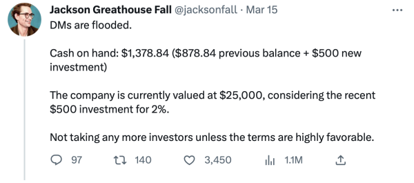 Hall had $62.84 leftover over so he asked GPT-4 what he should do with it. Like any good hustler, GPT-4 knew that its product needed visibility so it suggested allocating $40 for Facebook and Instagram ads. All of this Twitter hype had investors drooling over getting in early on the next great affiliate marketing site viral GPT-4 experiment. By the end of day one, Green Gadget Guru had $100 in investment from an undisclosed party.