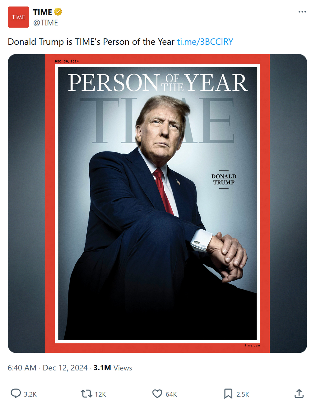 Trump beat out a shortlist that included Vice President Kamala Harris, his newfound billionaire political ally Elon Musk, Israeli Prime Minister Benjamin Netanyahu, and Catherine, Princess of Wales, better known as Kate Middleton. Notably, Musk had previously earned this title in 2021. Last year, the title was given to popstar Tayor Swift, while Joe Biden and Kamala Harris jointly shared the award in 2020.