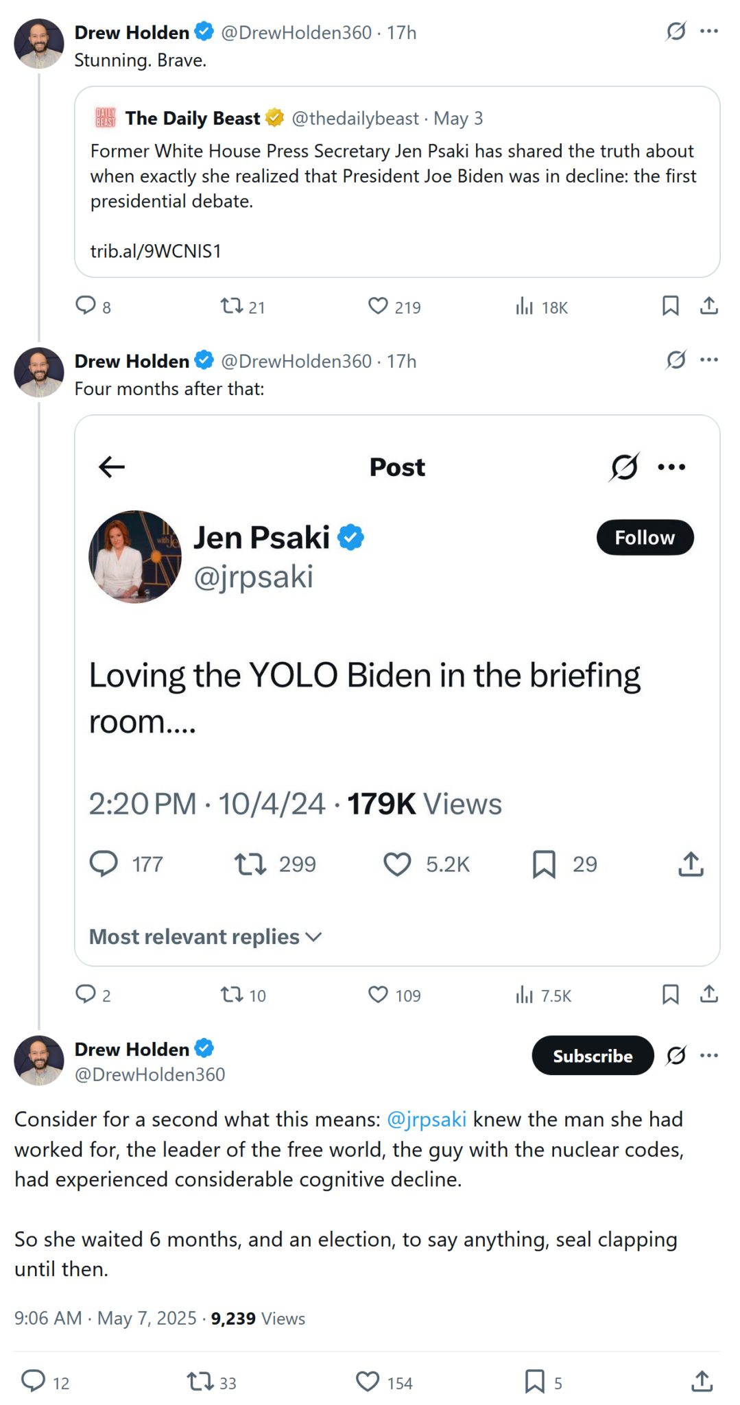 Psaki infamously kept schtum after the 20204 debate that made Biden’s decline too obvious to continue to deny: