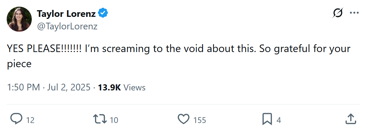 Taylor Lorenz approved, to boot (unexpectedly):