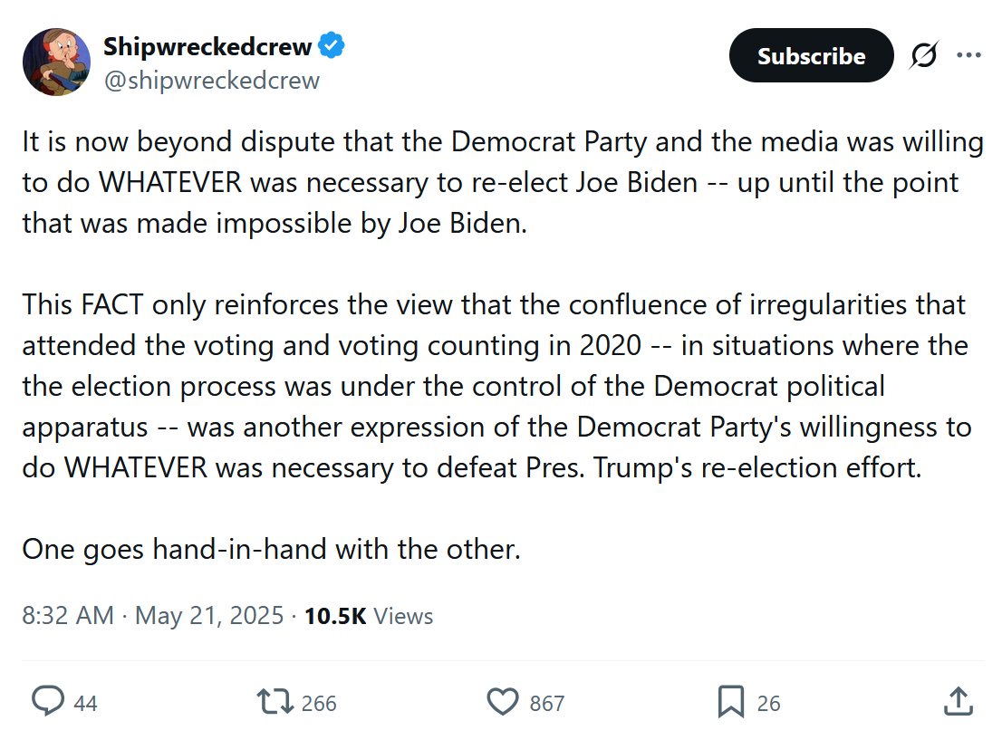 — Scott Adams (@ScottAdamsSays) May 21, 2025