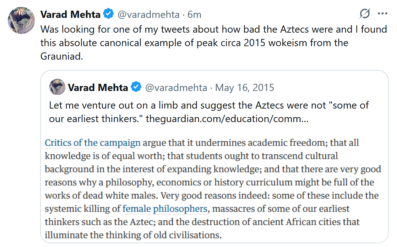 UPDATE: “Some of earliest thinkers, such as the Aztec:”