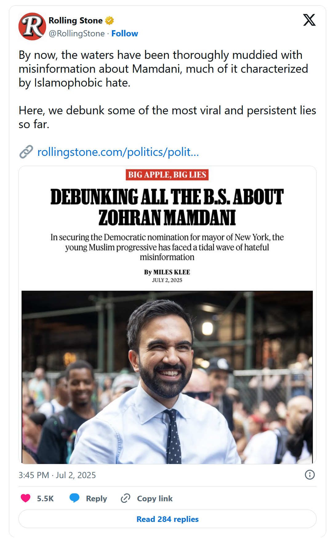 ROLLING STONE’S ‘FACT CHECK’ ABOUT ZOHRAN MAMDANI IS EXACTLY THE PROPAGANDA YOU’D EXPECT: