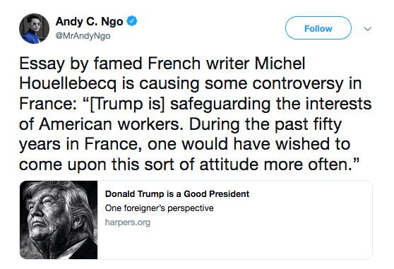 Here’s the essay, entitled Donald Trump Is A Good President. I can imagine the shock that must have inspired. Though you probably won’t like it.