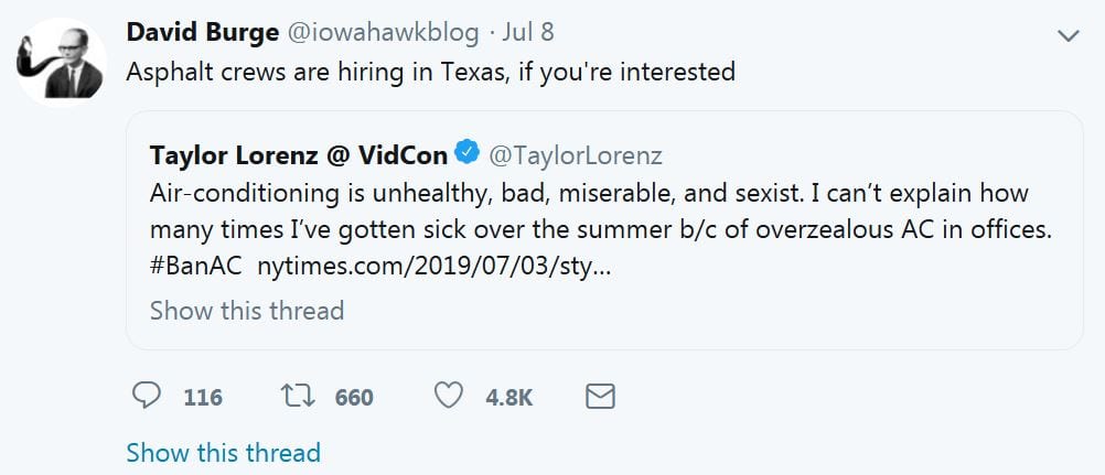 Iowahawk has a simple solution to the author’s preference for warmer working conditions: