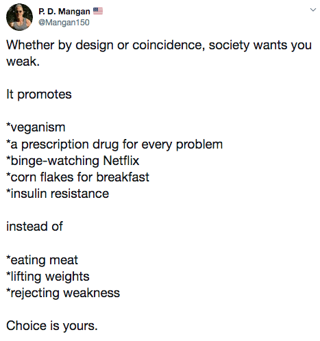 Vegans should just be grateful for not being pantsed on sight. Veganism is stupid and immoral, and mostly a marker for mental illness or deficiency.