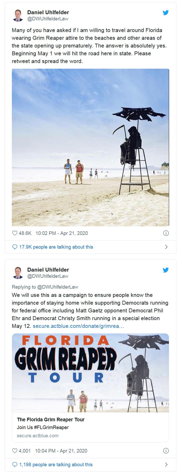 DISPATCHES FROM THE PARTY OF DEATH: Florida Man Will Wear Grim Reaper Outfit to Scare People Away from Beaches (and Raise Money for Dems).