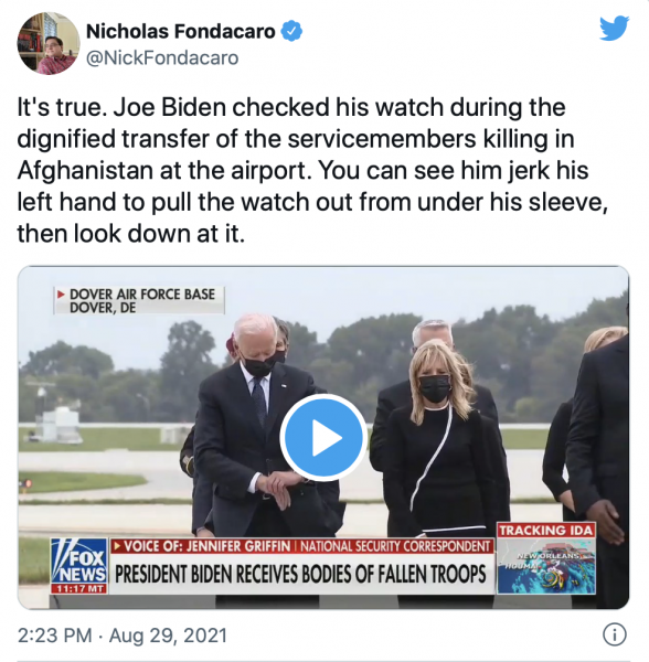 TO BE FAIR, IT WAS ALMOST PUDDING CUP TIME: Was Biden looking at his watch during ceremony for Marines killed in Kabul?