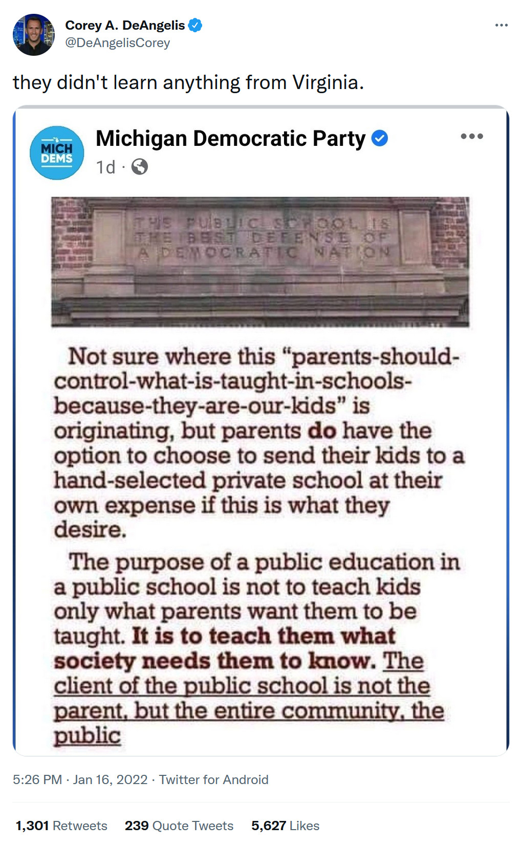 And yesterday, on her Substack, A.P. Dillon noted: Wake County NC Democrat tweet includes image disparaging parents: