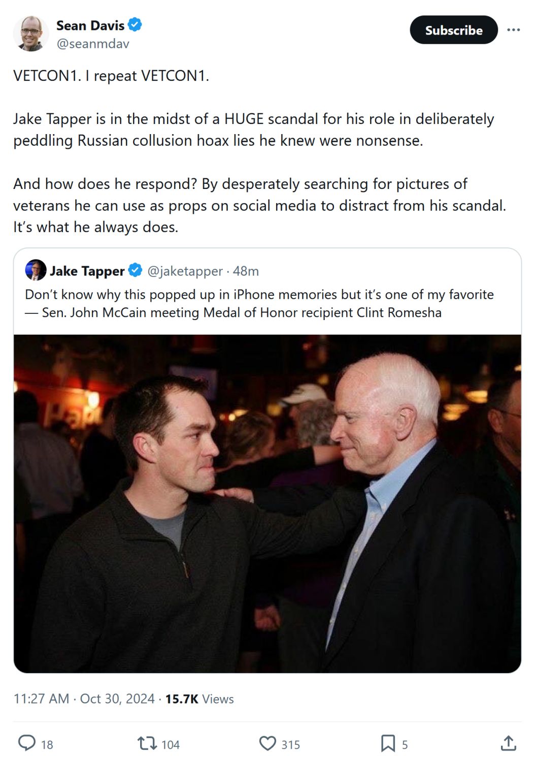 And here’s Tapper today: