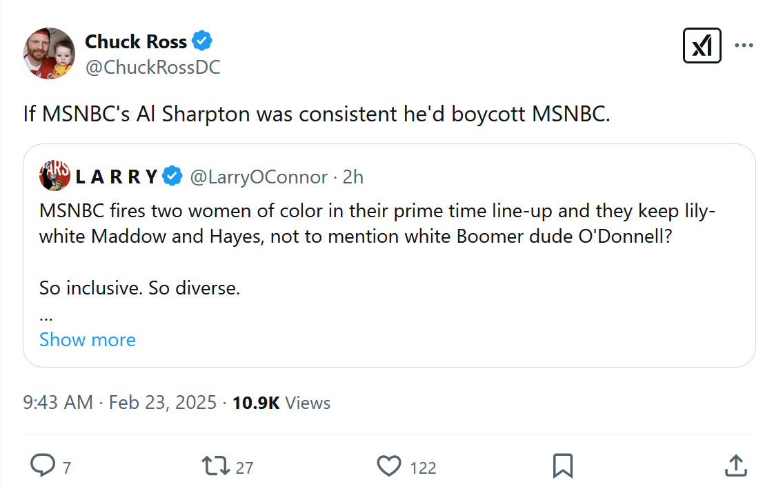 Alex Wagner, married to “former White House nutrition policy advisor and assistant chef Sam Kass…The wedding was attended by then U.S. President Barack Obama and his family,” also lost her show as well: Joy Reid and Alex Wagner Axed From MSNBC Lineup in Major Network Shakeup.