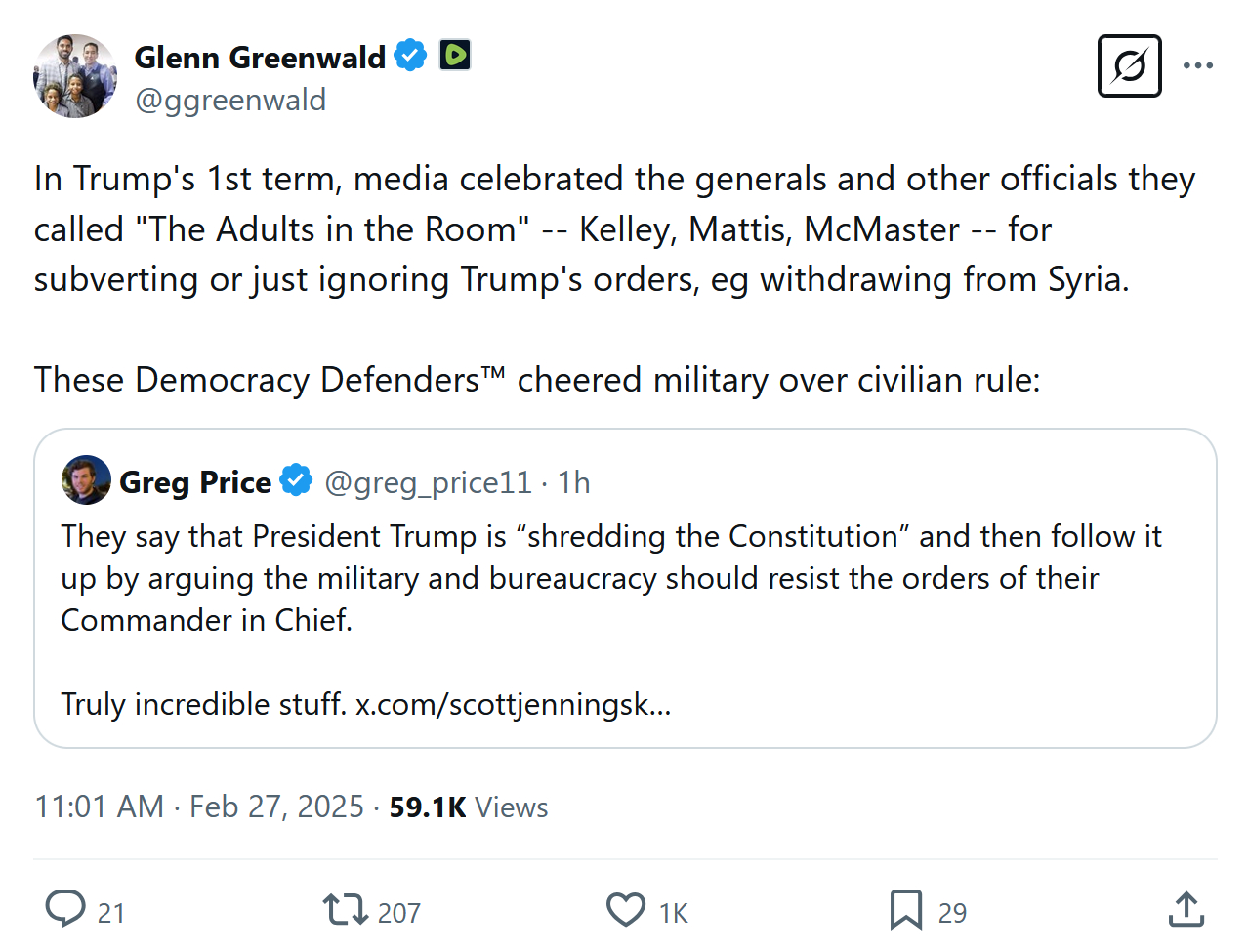 JENNINGS: I’m interested in this conversation. He’s going to put someone in charge who will contravine the Constitution? Like who? What do you mean by that? The president is in charge of the military, is he not? You said he’s going to put someone in charge.