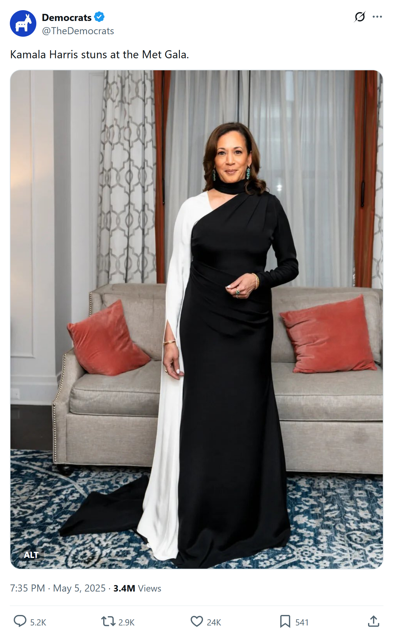 The caption on the photo tweeted from the Democrats account may have read, “Kamala Harris stuns at the Met Gala,” but that is not how most Americans will view it.
