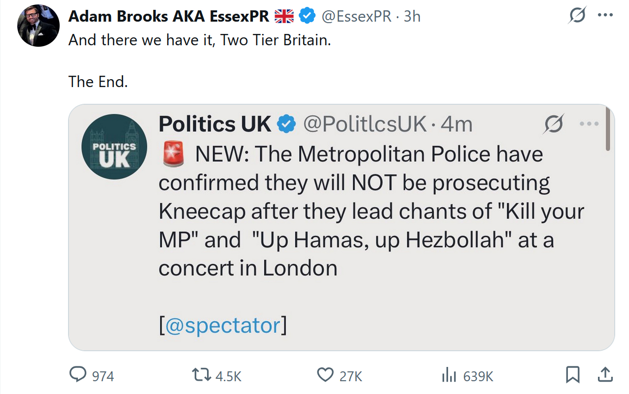 It’s like Prime Minister Starmer has multiple different standards of justice for his nation. Two tiers, as it were: