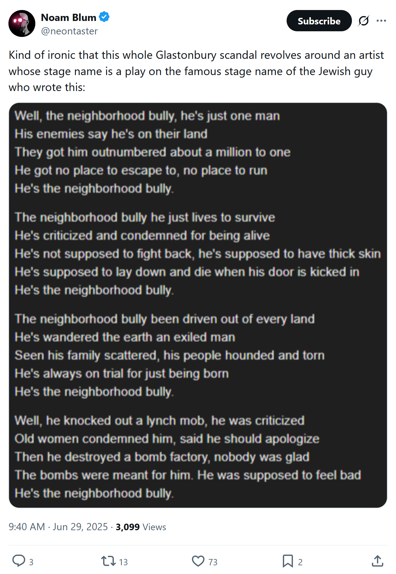 BOB VYLAN, GLASTONBURY AND THE BANALITY OF JEW HATRED: