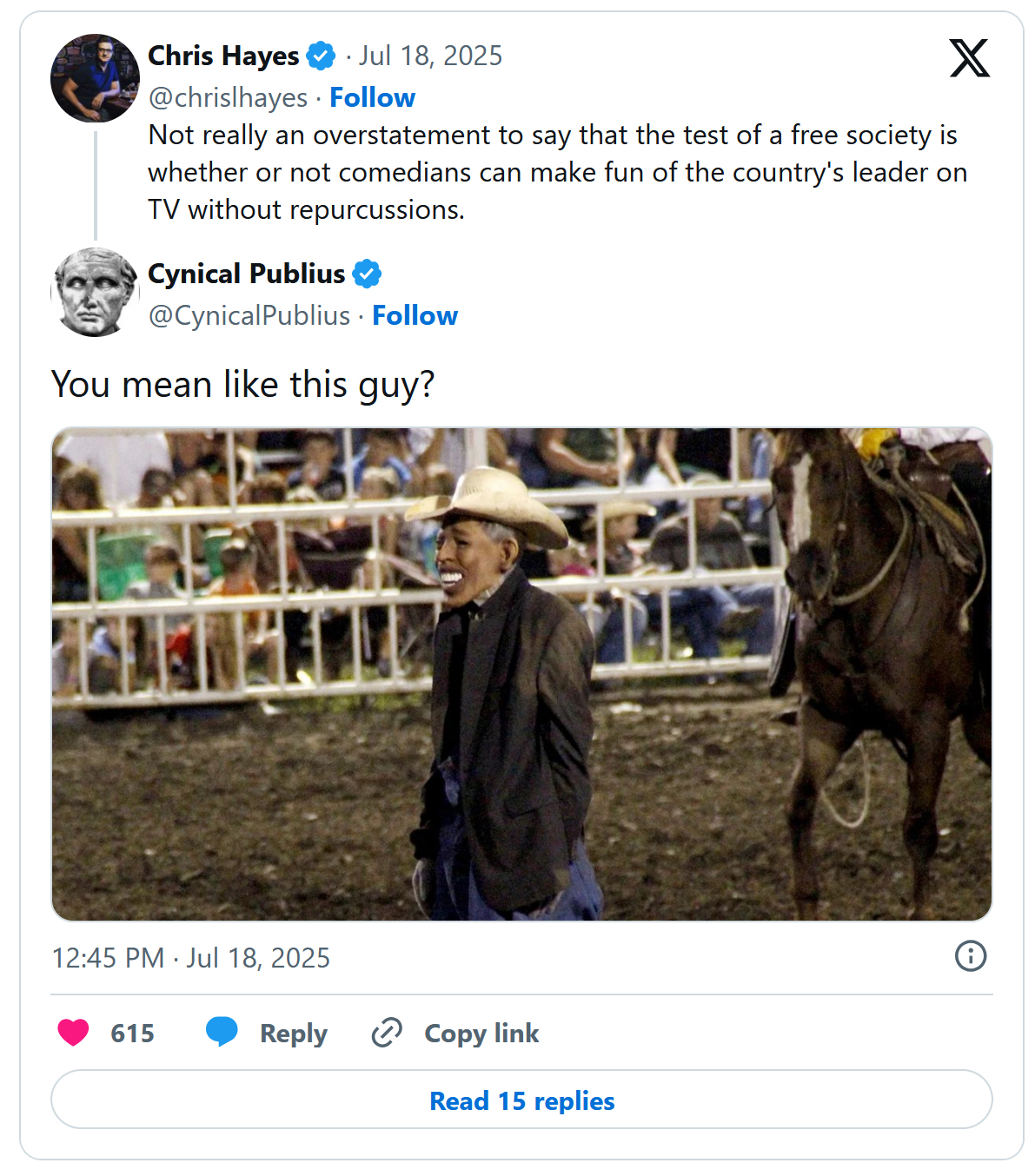 Skip to 5:00 if you want to see Stephen Colbert’s Regime “Comedy” in the past year.