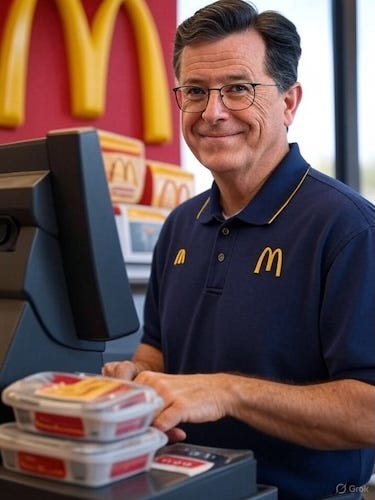 UPDATE: If not CNN, MSNBC, or a podcast, Jim Treacher, with an assist from Grok, speculates another possible gig for Colbert next year: Has the Tide Turned Yet? Quite possibly.