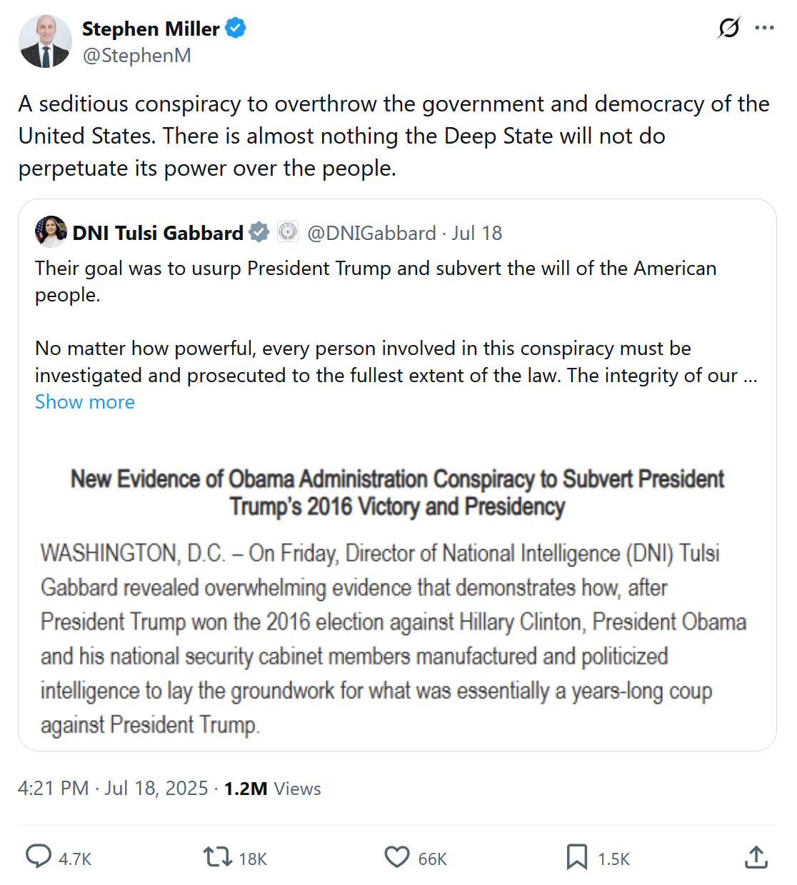 Here’s the full tweet by Trump aide Stephen Miller that Kelly references: