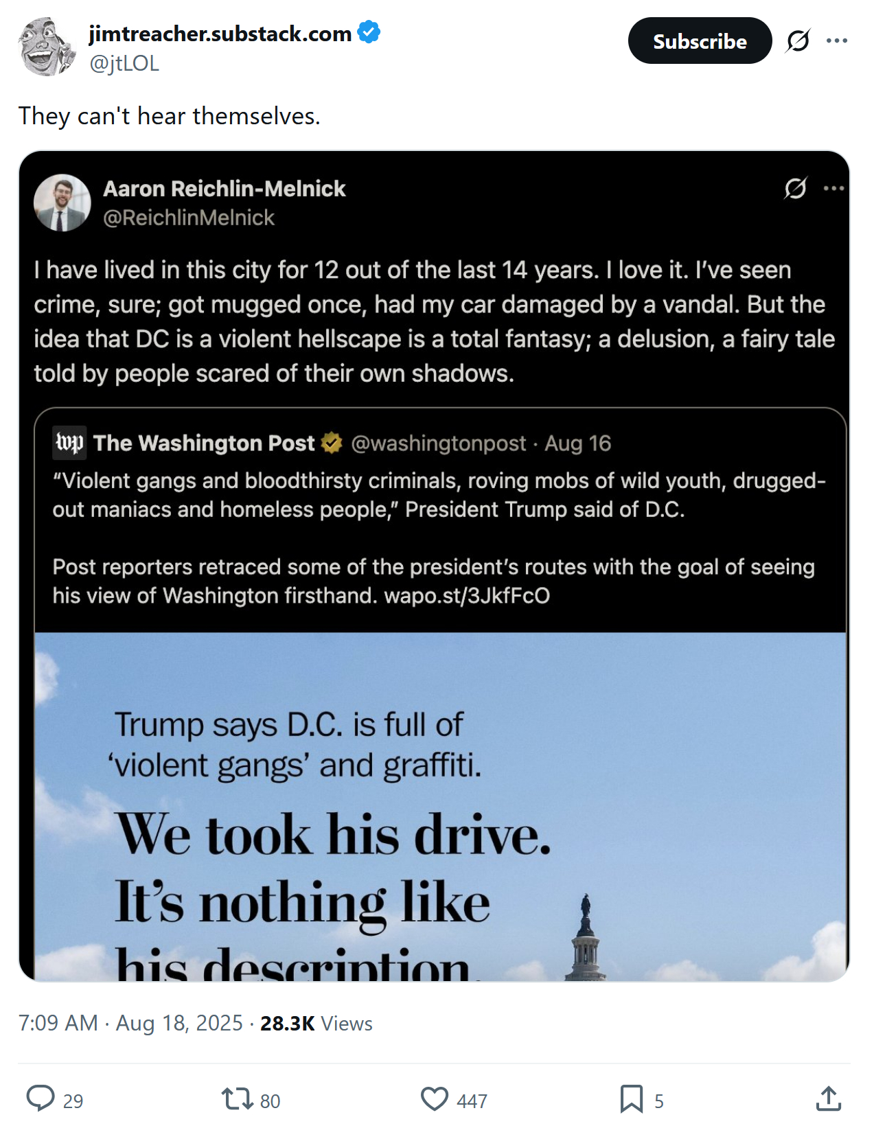 Bonchie of RedState adds, the WaPo “did this during the day, after all the deployments of federal authorities, and stayed in the touristy spots. The press are a parody.