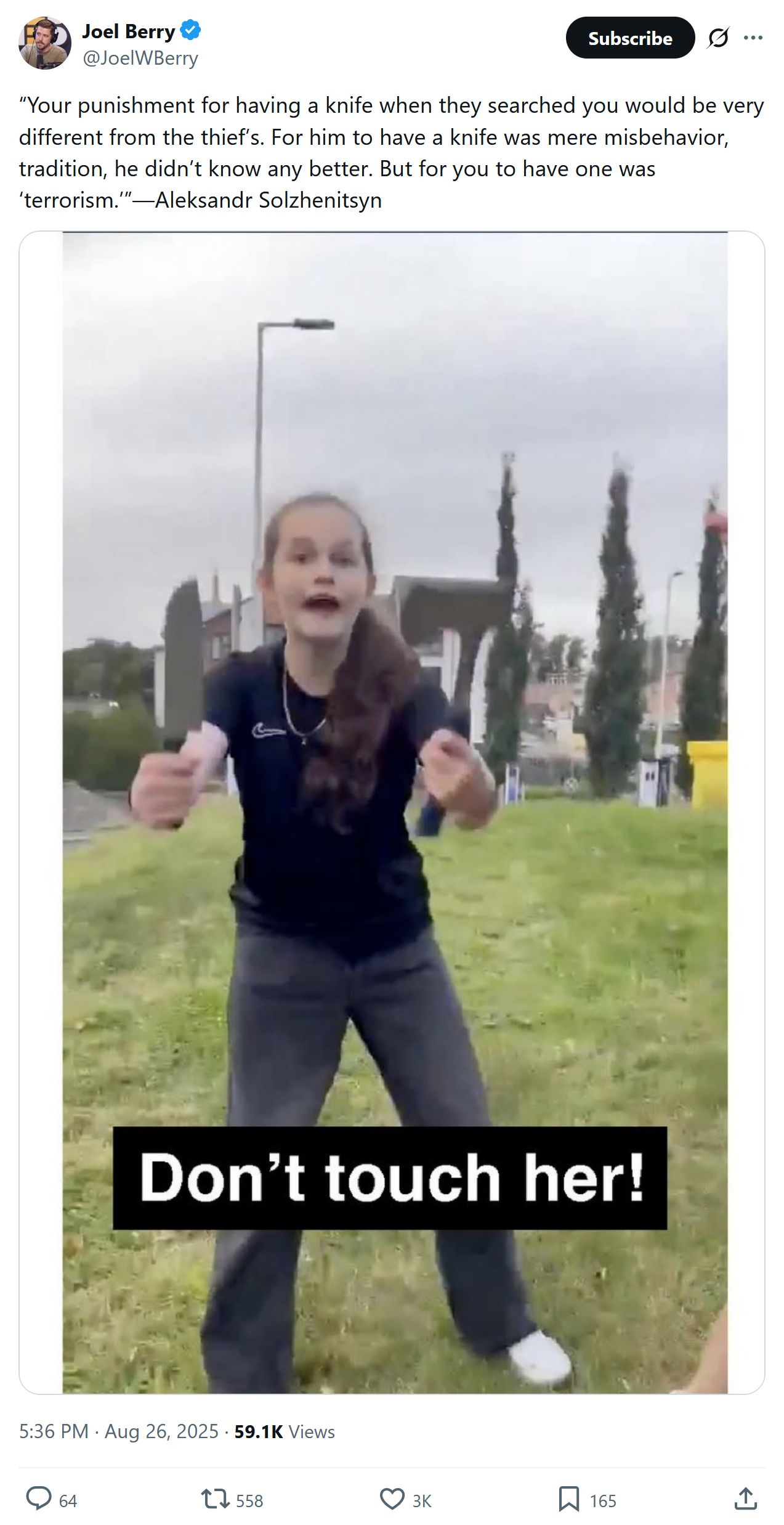 How many of you realized that the video of Mayah Sommers brandishing weapons to keep her sister safe was made and posted by the would-be assaulter? That he, speaking clear English, goaded her to show the weapons so he could film her and have her arrested?