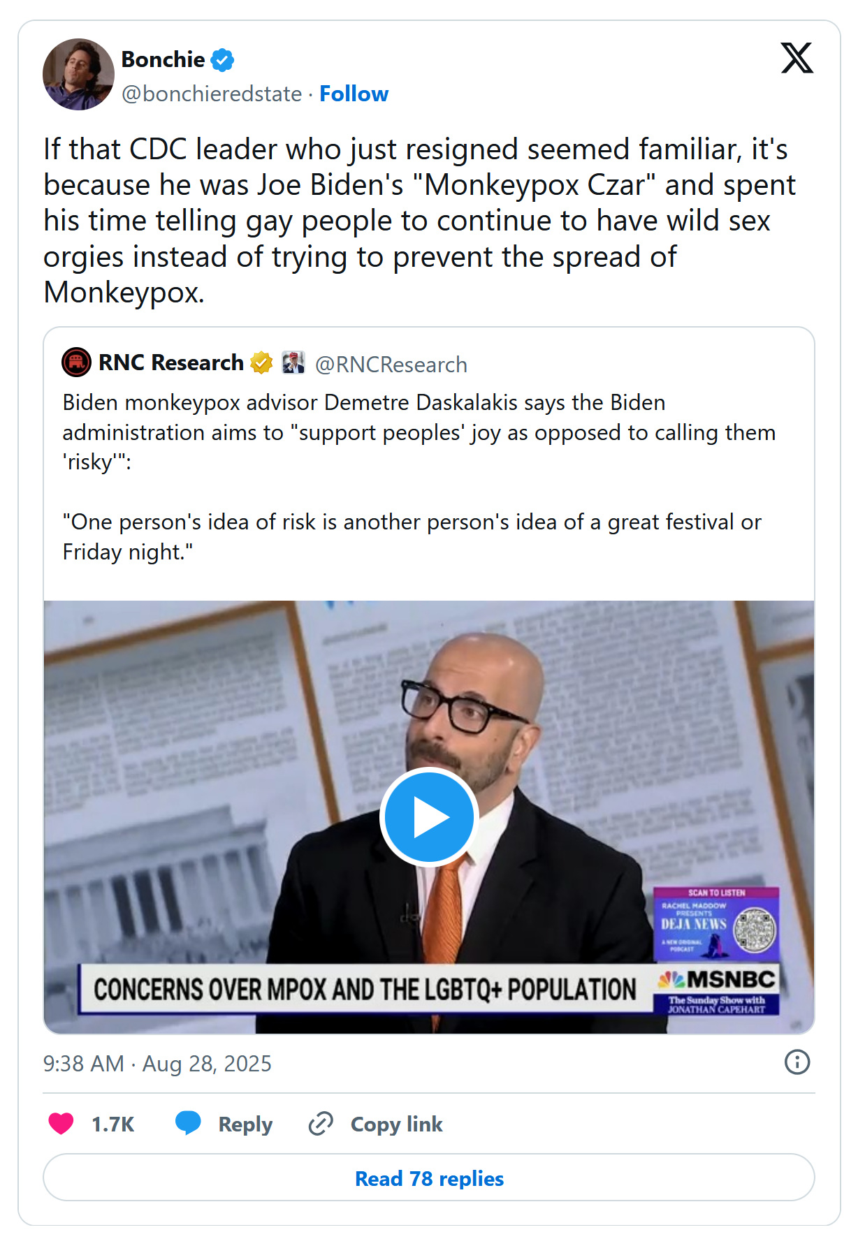 It also bears noting that monkeypox was sold to the American people as a highly transmissible disease, when in fact it was a sexually transmitted disease- transmitted in a very specific manner. The disease would subsequently be renamed “mpox” so as to avoid stigmatizing gay men. Reasonable people might say that THIS also was politicized science and just one of the many such excesses of the Biden Era.