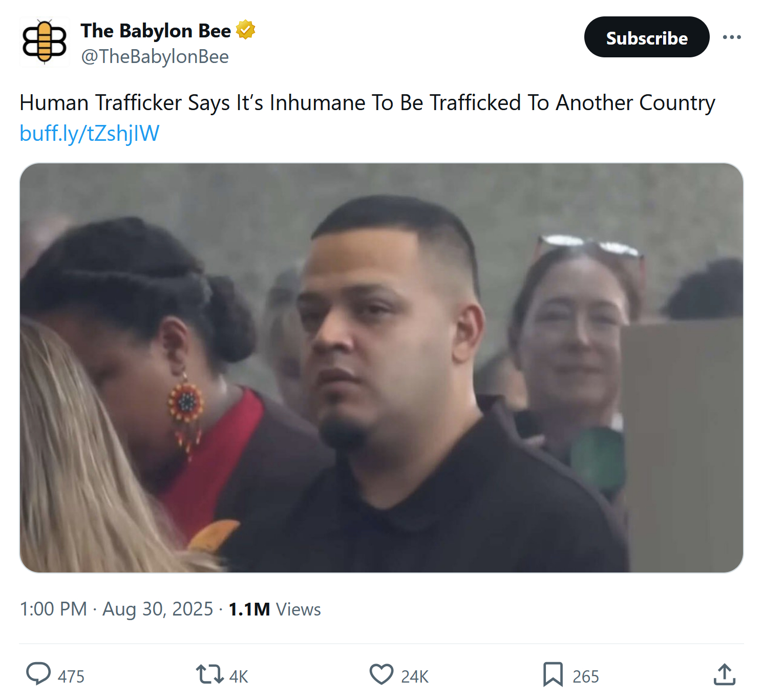 Meanwhile, America’s Newspaper of Record satirizes the recursion that the alleged human trafficker is caught in: