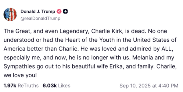 I HOPE THIS ISN’T TRUE, BUT BASED ON A CLOSER-IN VIDEO POSTED TO X, I WOULDN’T BE SURPRISED: Charlie Kirk dead at 31 after shooting at Utah event, three officials confirm.