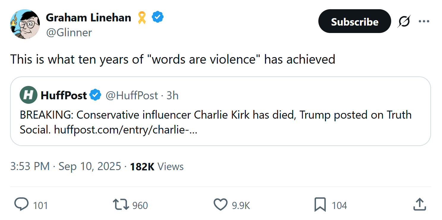 GRAHAM LINEHAN: “This is what ten years of ‘words are violence’ has achieved.”