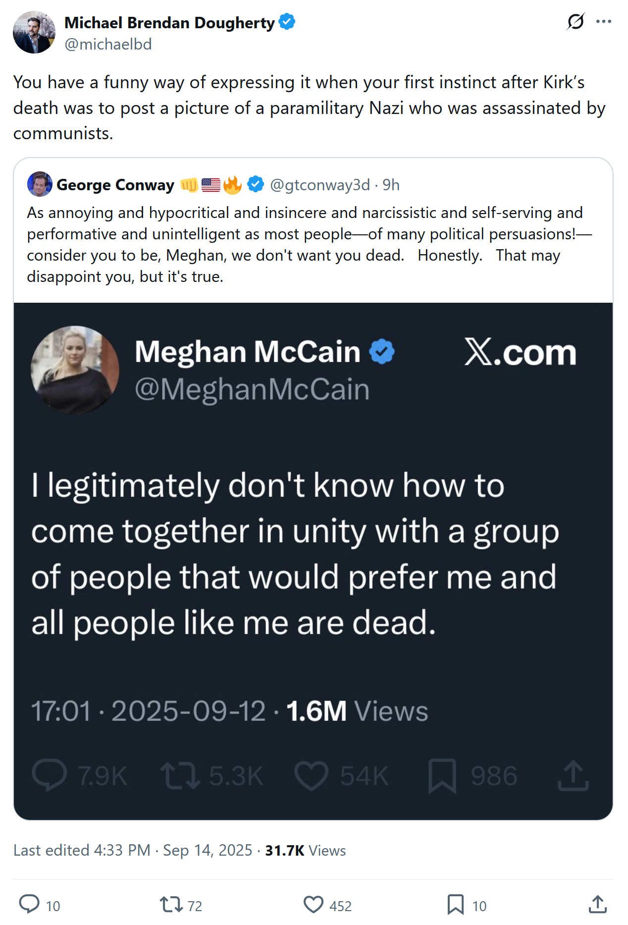 He doesn’t care: George Conway doubles down after comparing Nazi assassination to Charlie Kirk killing.