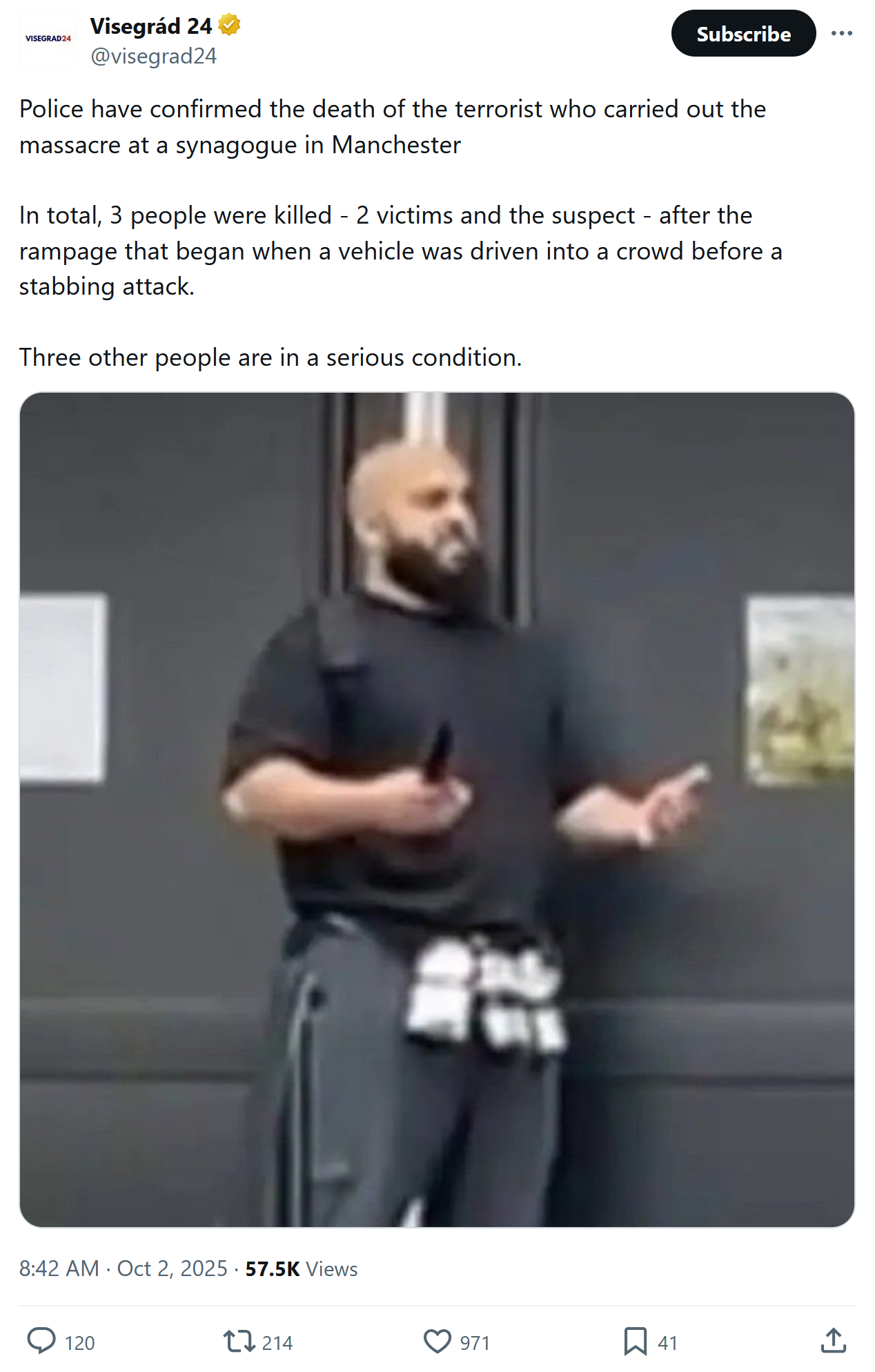 JUST IN – UK's Counter Terrorism Police name Manchester synagogue attacker as Jihad Al-Shamie, a 35 year old UK citizen, of Syrian descent — Sky
